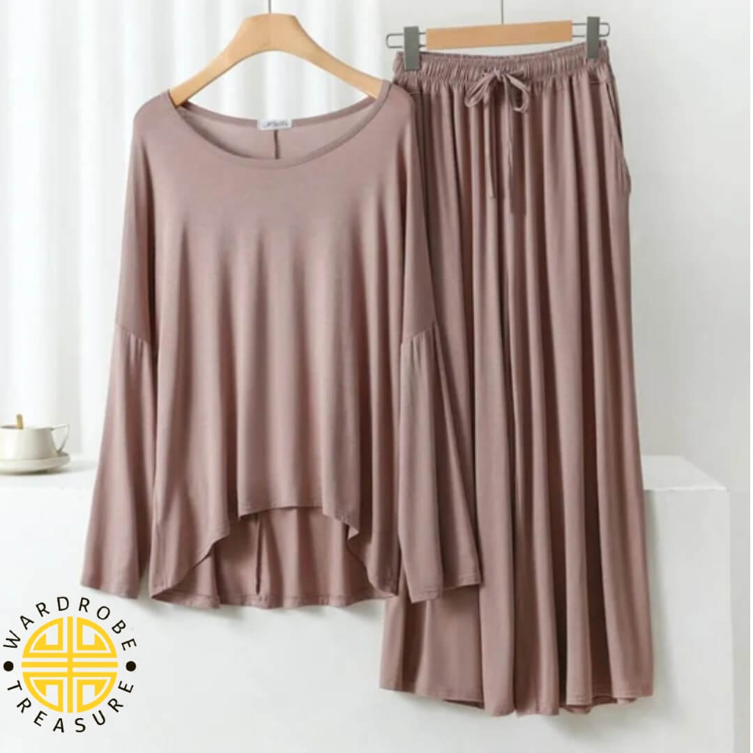 Beige Frill Sleeves Shirt with Palazzo Lounge Wear For Her