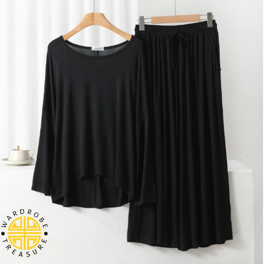 Black Frill Sleeves Shirt with Pajama Lounge Wear For Her