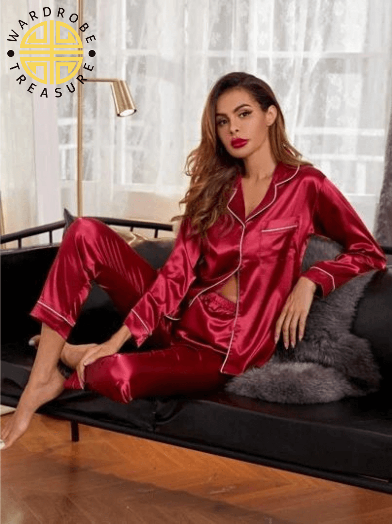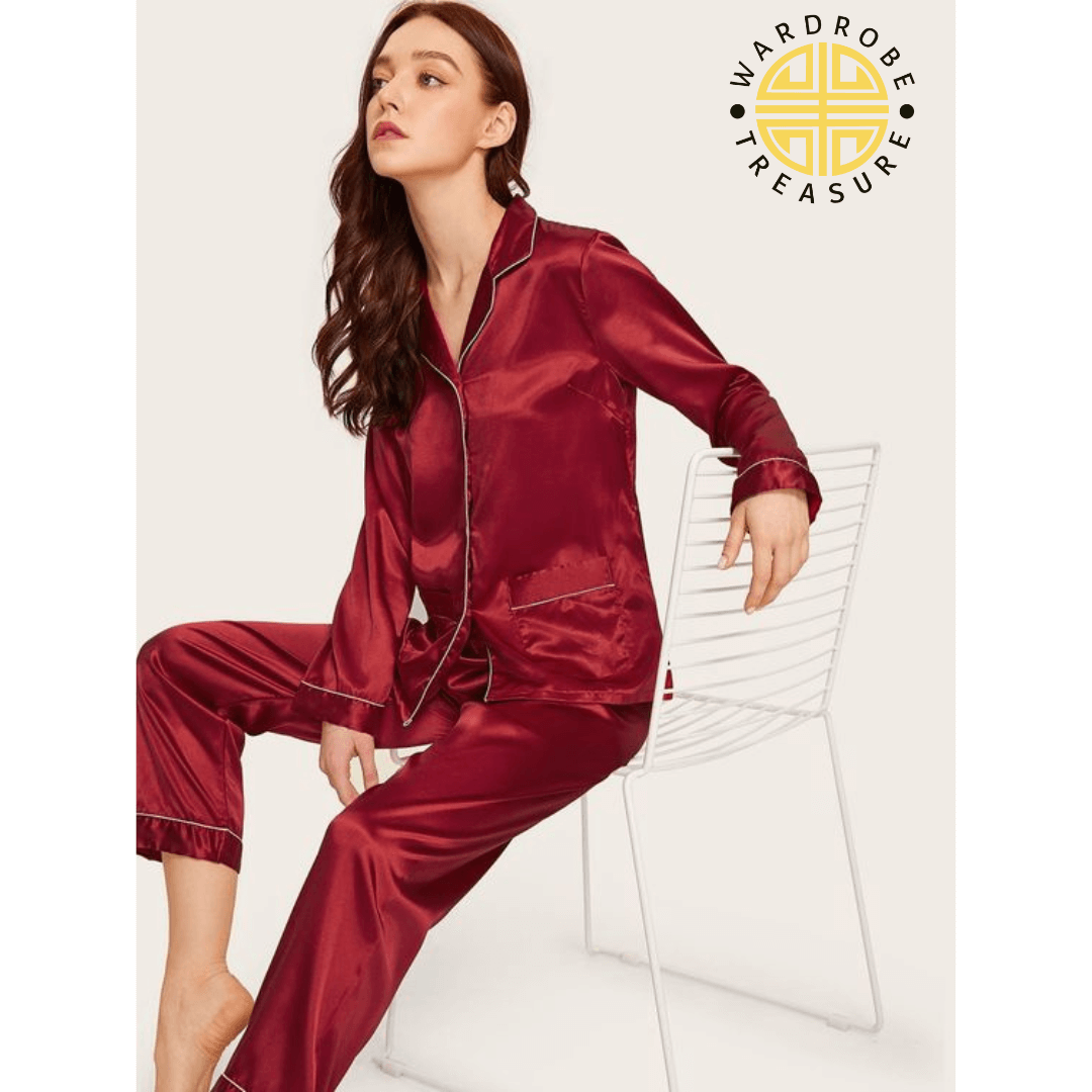 Burgundy Maroon Silk PJ Set For Her