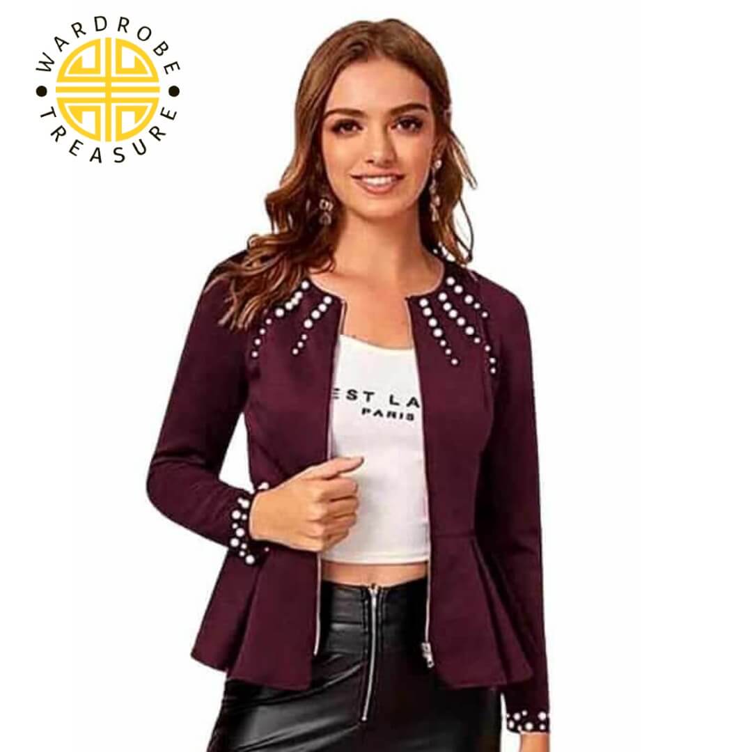 - The women's fashionable casual Pearl Zipper Jacket sleeve lengthened fleece cardigan fabric feels comfortable and exquisite. It is simple and delicate. It is a perfect version type for daily appointment and party.